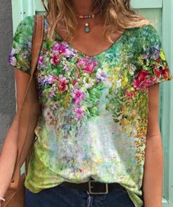 Be the first to review “Flower Casual V Neck Shirts & Tops”