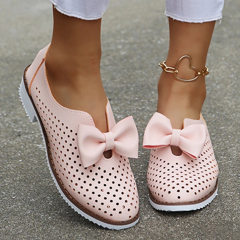 Women Casual Elegant Simple Pu Bowknot Hollow-out Flat Loafers