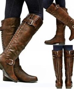 ⭐ Rivet Block Heel PU Knee-High Boots Vintage Women Boots