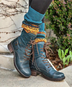 ⭐ Side Zipper Round Toe Color Block Thread Casual Boots