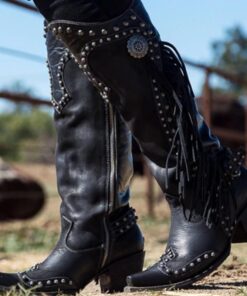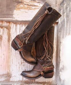 Women Vintage Tassel Knot Knee High Boots Chunky Heel Boots