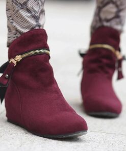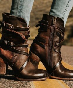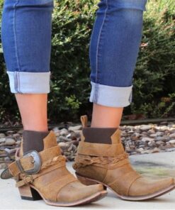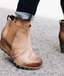 Women Vintage Low Heel Slip-On Comfy Pu Ankle Boots