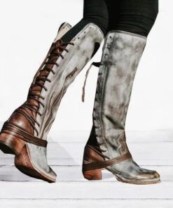 Women Vintage Lace Up Boots European Style Bandage Above Knee Boots