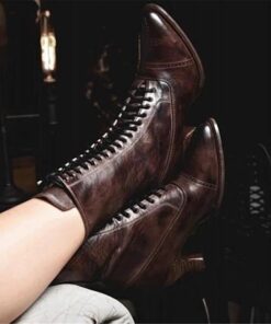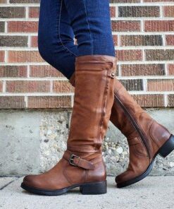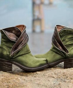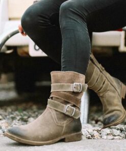 Women’S Vintage Mid-Calf Boots Zipper Booties With Adjustable Buckle