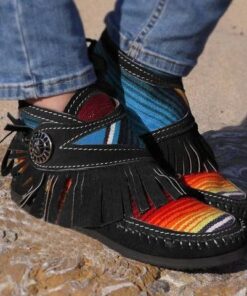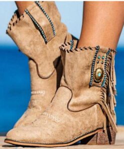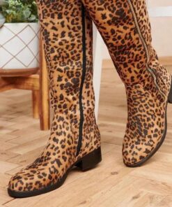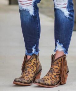 Fashion Leopard Tassel Low Heel Shoes Non-Slip Boots