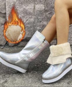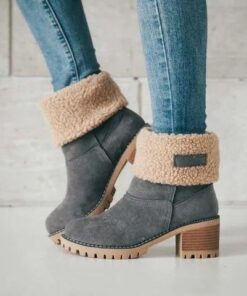 Female Winter Shoes Fur Warm Snow Boots Square Heels Ankle Boots