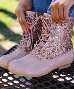 Fashion Paillette Splicing Lace-Up Ankle Boots