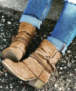 Gentlewomanly Round Toes Chunky Heels Martin Bootes