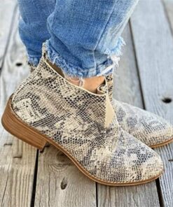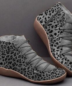 Leopard print Crisscross Lace-Up Low Wedges Ankle Booties