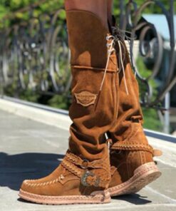 Low Heel Belt Buckle Riding Boots Plus Size Split Joint Boots