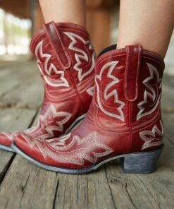 Retro Embroidery Ankle Booties Slip-on Women Cowboy Boots