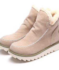 Pure Color Warm Fur Lining Winter Ankle Snow Boots For Women