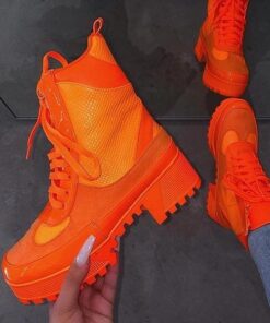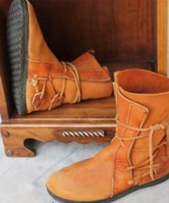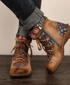 Retro Casual Splicing Jacquard Lace Up Comfy Flat Boots