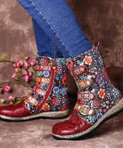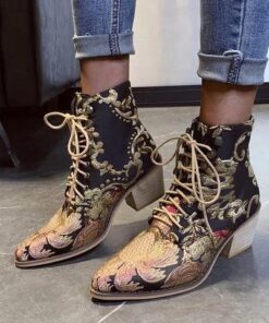 Plus Size Chunky Heel Vintage Flowers Embroidery Mid Boots