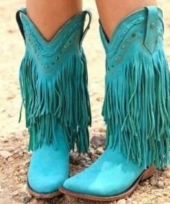 Plus Size Tassel Vintage Leather Chunky Heel Cowboy Boots