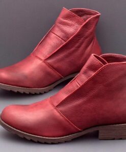 Plus Size Vintage Leather Zipper Chunky Heel Ankle Booties