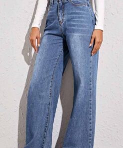 ⭐Regular Waist Solid Color Regular Fit Hole Casual Jeans