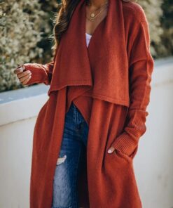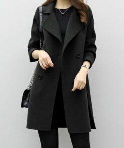 Lapel Cardigan Solid Color Belted Long-sleeved Woolen Coat