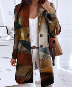 Fashion Turndown Collar Printed Color Long Sleeve Pocket Coat