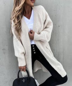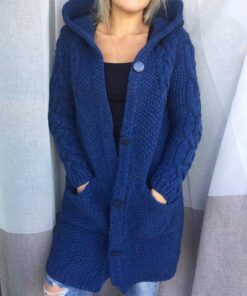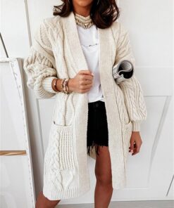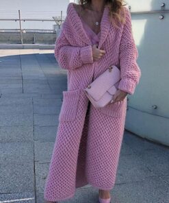 Solid Knitting Warm Cardigan Winter Long Coat With Pockets
