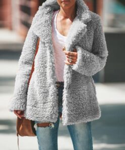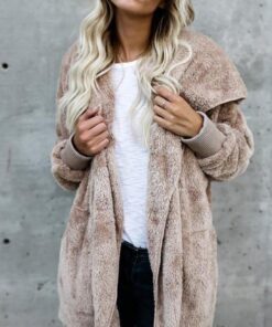 Solid Casual Long Sleeve Hoodie Faux Fur Velvet Pockets Coat