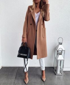 Solid Pockets Lapel Shawl Collar Single-Breasted Winter Lady’s Warm Coats