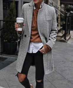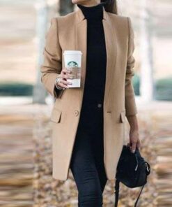 Vintage Button up Slim Winter Women’s Mid Length Overcoat