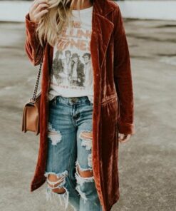 Women Plus Size Fashion Gold Velvet Long Coat