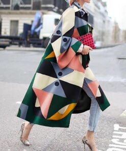 Women Stylish Color Block Contrast Long Coat