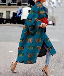 Women Vintage Butterfly Print Long Coat