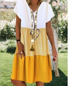 V Neck Dot Printed Floor Length Dress(3 Colors)