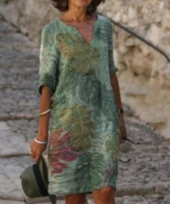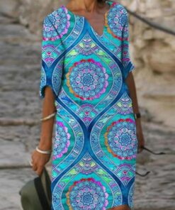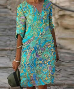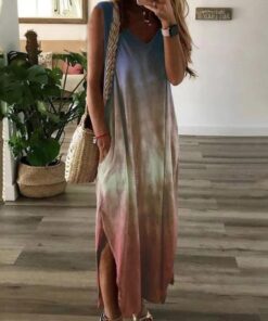 Women V Neck Ombre/tie-Dye Shift Casual Dresses