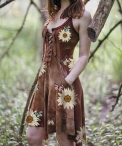 Women’s Slim Irregular Hem Sunflower Butterfly Print Dress