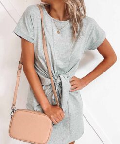⭐Loose Tie Solid Color Short Sleeves Mini Dress(6 colors)