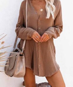⭐Seersucker Fringed Long Sleeves Mini Dresses