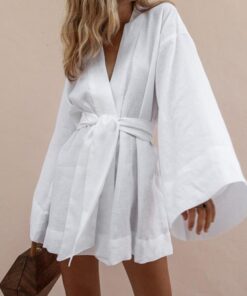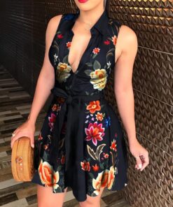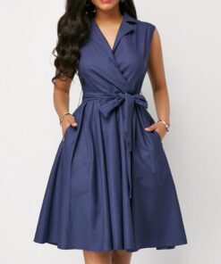 Sleeveless Solid Color Lapel Tie A-Line Dress