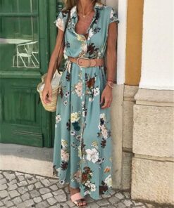 Shirt Collar Women Dresses Shift Daily Cotton-Blend Floral Dresses*