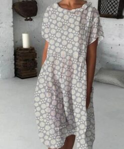 Summer Casual Round Neck Short Sleeved Dresses