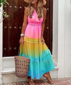 Summer Tie Dye Ombre Sleeveless Holiday Dress