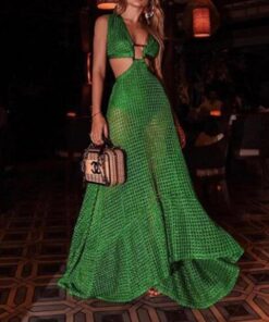 Summer Sexy V-neck Green Solid Dresses