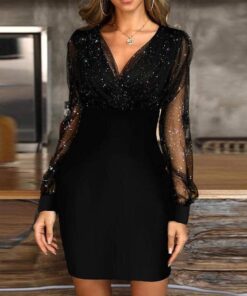 Solid Long Sleeves Bodycon Above Knee Little Black/Party/Elegant Dresses