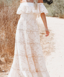 ?Fashion Solid Flounce Off the Shoulder Cake Skirt Dresses