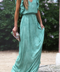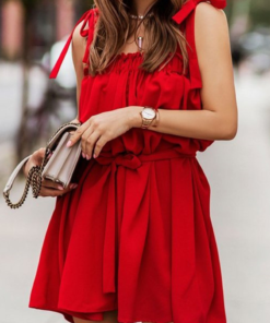 ?Fashion Solid Flounce V Neck Waist Skirt Dresses