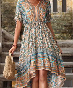 ?Fashion Print Split Joint V Neck Irregular Dress Dresses