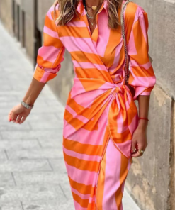?Fashion Print Split Joint Turndown Collar Shirt Dress Dresses(3 colors)