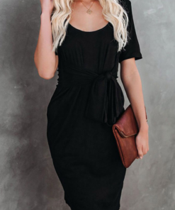 ?Fashion Solid Bandage U Neck Pencil Skirt Dresses(5 colors)