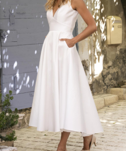 ?Sweet Solid Split Joint V Neck Cake Skirt Dresses