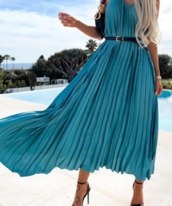 ?Fashion Solid Fold Halter Straight Dresses(5 colors)