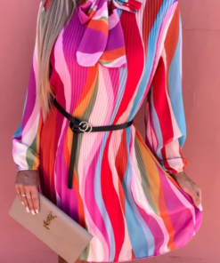 ?Sexy Print Split Joint V Neck Waist Skirt Dresses