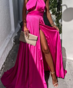 ?Street Solid Split Joint Halter Pencil Skirt Dresses(6 colors)